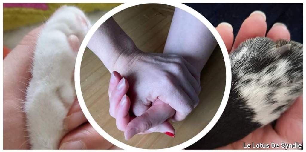 « Main dans la main, patte dans la main, nous travaillons ensemble pour que chacun(e) retrouve son chemin de guérison intérieure. » Syndie