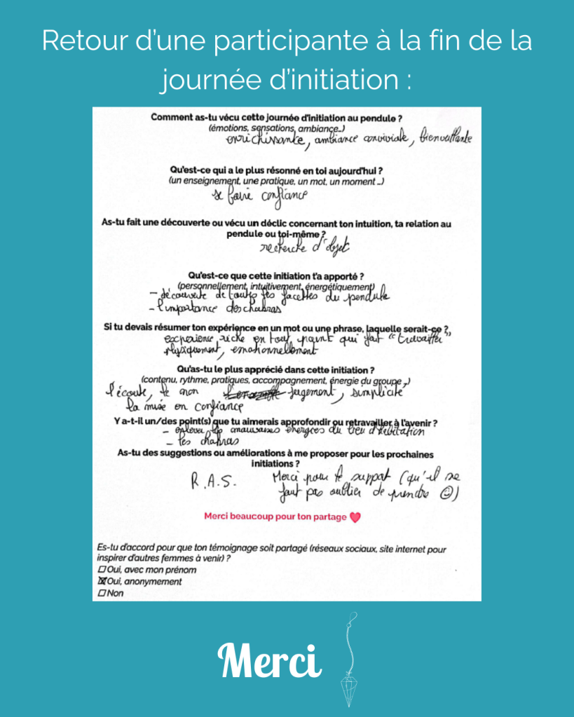 Prérequis : Si vous avez un pendule, le porter sur soi, tous les jours, durant au minimum une semaine avant l’initiation.